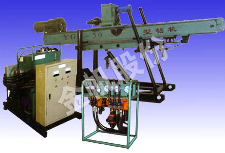 | As one of our company’s mature products— YG-50 anchoring drilling rig had been exported to Brazil and during this month(April,2009) we have to sold the same machine to Brazil again. These two businesses help us to expand market in South America and also proved that YG-50 anchoring drilling rig is recognized by the Brazil customer. YG-50 construction drilling rig is a full hydraulic operated top drive power head drill machine. It is applied to drill heavy duty pretension anchor holes at side slope of water power station, railway or highway projects, to drill drainage holes and grouting pile holes on roof of tunnel (gallery). The machine’s specifications are as follows: 1) Hole depth: 60-40 m 2) Hole diameter: φ100-168 mm 3) Drilling rod Diameter Length: φ73×1500 mm φ89×1500 mm 4) Hole angle range: 0-120° 5) Output speed of top drive power head (forward and reverse) :5-120 r/min 6) Output torque of top drive power head: 2000 Nm 7) Feeding stroke of top drive power head: 1800 mm 8) Mast slide stroke: 500 mm 9) Maximum lifting capacity of top drive power head: 30 KN 10) Maximum thrust force of top drive power head: 15 kN 11) Rated pressure of hydraulic system: 20 Mpa 12) Motor Type Y180M-4 Power: 18.5 kW 13) Overall dimension of main set: 3000×1000×1500 mm 14) Weight: 1000 kg 15) Weight of the heaviest component: 200 kg |