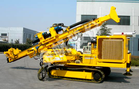 2. The structure of the drilling rig is loading on the whole track chassis (or special second cartwheel chassis). Machine moving, hole position directing can be more convenient and faster that saves more assistant time of moving from one hole to another hole positions when drilling in one work area.
