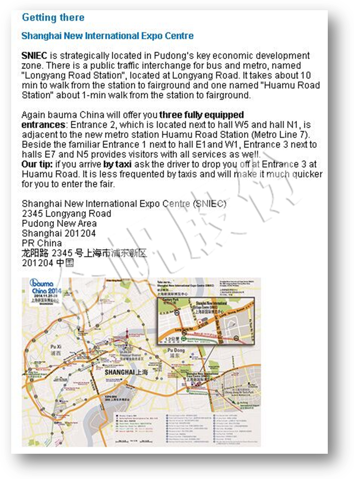Our company is going to participate in the Bauma Mechanical Exhibition in November 2014, which is organized in ShangHai. We are looking forward to meet you there and communicate together about our products. Following is the detailed information: