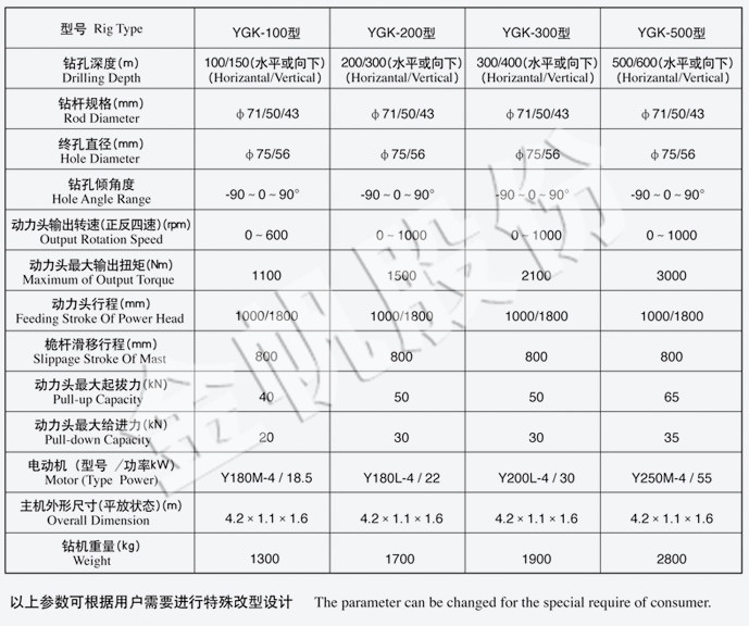 Applications The YGK series of tunnel drilling machines are fully hydraulic powered head type drilling machines. They are a new series of tunnel drilling machines independently developed by Wuxi Shuangfan (Jinfan) Drilling Equipment Co., Ltd. They are mainly used for geological exploration and core drilling in tunnels. They can also be used for drainage holes and gas drainage holes.