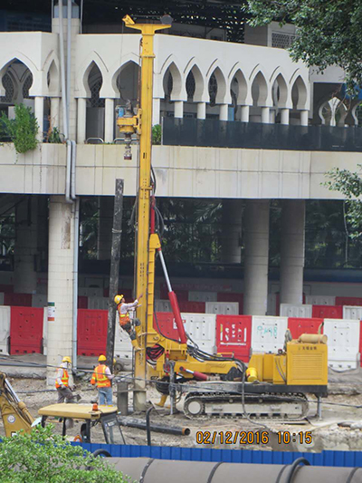 马来西亚亿励岩土公司使用无锡金帆股份YGL-200GM型钻机,在首都吉隆坡捷运(轨道交通)工地承接钻孔桩施工工程。