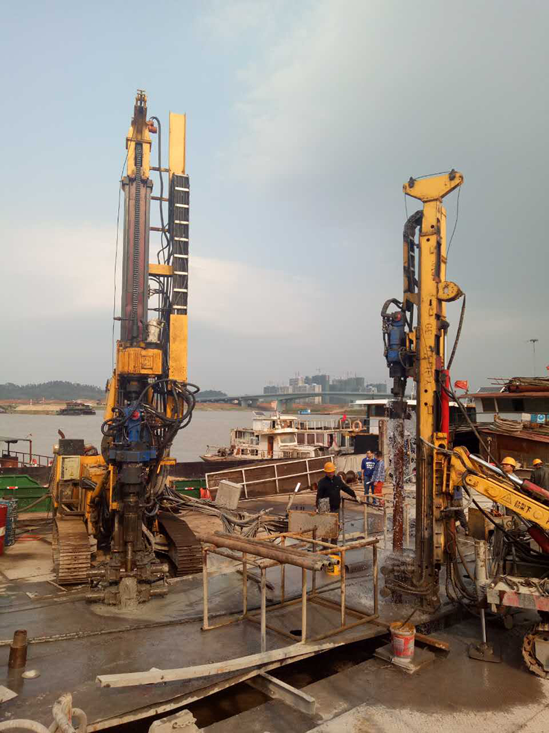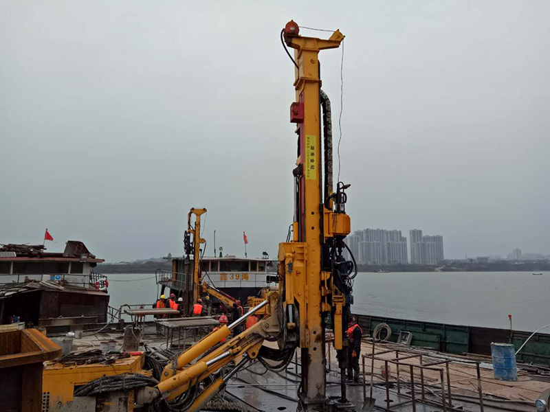 中交集团承建的湖南湘江某过江隧道,需要在江面上做注浆帷幕工程,客户采用金帆股份的YGL-C150,YGL-C200型钻机在船上施工。孔深50米,孔径146 毫米,,湘江水深25米,使用直径127毫米全套管护壁钻进,钻机成孔速度快,注浆效果好,深受客户一致好评。