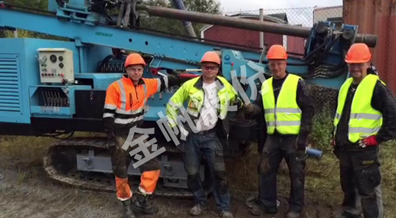 帅气的芬兰钻工们,潇洒的伫立在YGL-150R型地源热泵钻机旁边,脸上露出满意的微笑。YGL-150R型钻机为全液压动力头式履带钻机,进入芬兰市场后,用于地源热泵孔施工,钻孔直径150mm,孔深100-150米,钻机打孔速度快,施工效率高,深得客户好评。