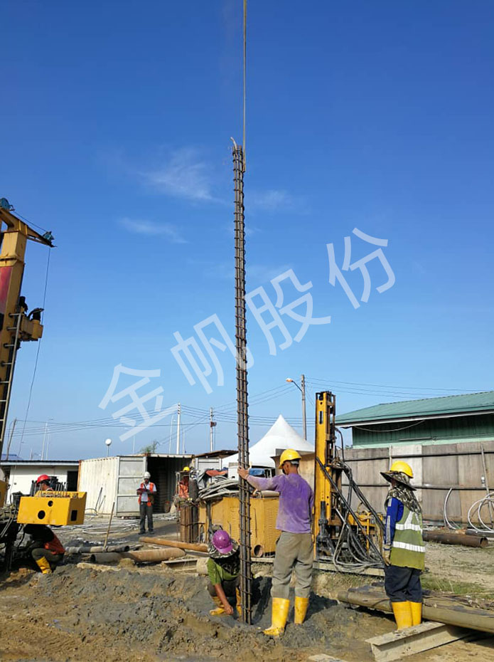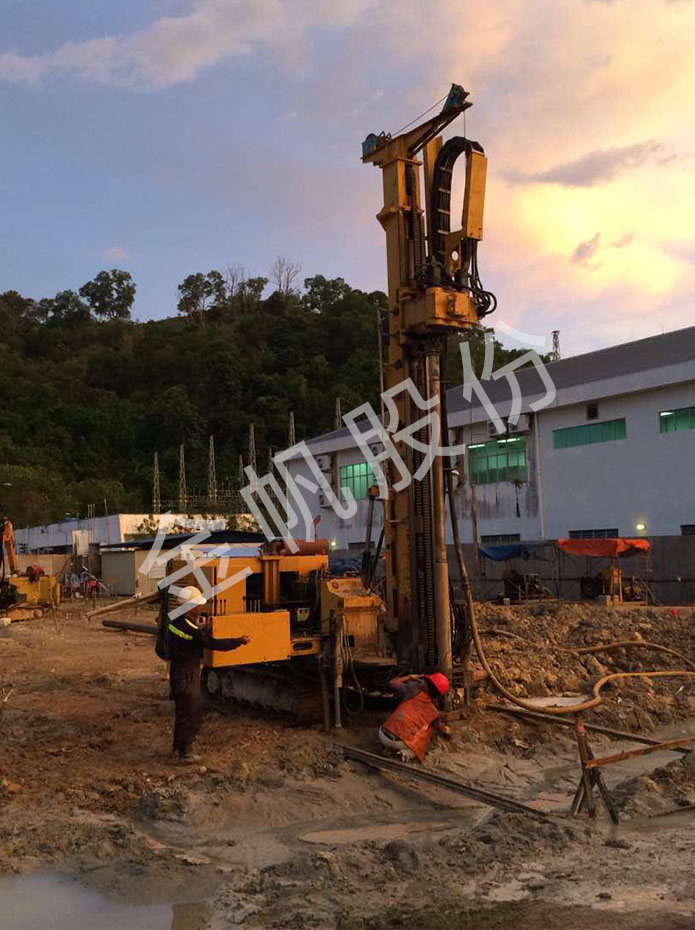 南海之南,在风景秀丽的马来西亚沙巴州一处建筑工地,夕阳斜照,椰风习习,工人们仍然忙碌着。一台YGL-150型钻机正在进行微型桩(Mini Pile)施工。客户Mr H介绍说:“这个工地有近三百多根微型钻孔桩(Mini Pile),建筑的重量将由这些钻孔桩来承担。钻孔直径300mm,深度25米。遇到岩石,采用风动潜孔锤(DTH)工法,两个小时可以钻成一个孔;遇到土夹石地层,采用泥浆循环工法,2-4个小时钻成一个孔。钻机用了几年前了,施工速度还是很快的!”。钻孔+下钢筋笼+浇注混凝土,三道工序,一气呵成。不久的将来,这里将耸立起一座崭新的建筑。