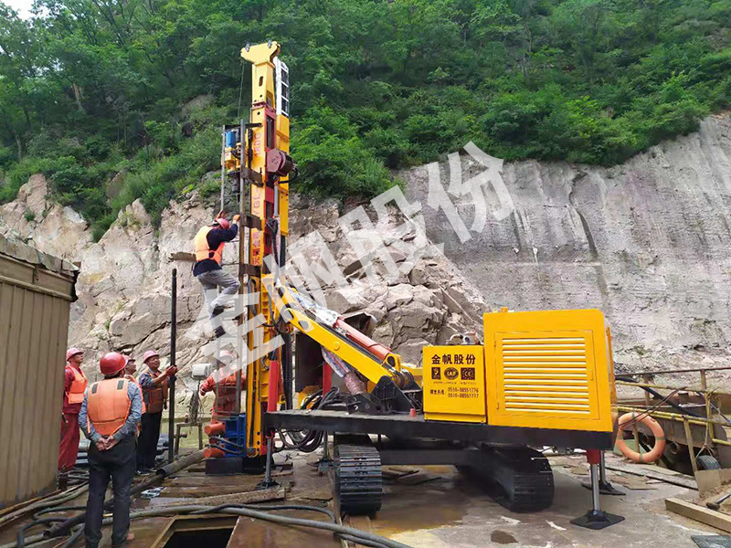 辽西北供水工程是为了彻底解决辽西北用水严重短缺的辽宁省内的“东水西调”重点工程。做为施工方之一的江苏鑫龙海洋工程有限公司,是一支能征善战的队伍,主要负责取水口的水下围堰爆破拆除。三年前,该公司购买了金帆股份的YGL-150A型全液压履带锚固钻机,克服水上施工的种种困难,在水深30米左右,有四五米的淤泥层采用146跟管护壁钻进,到了花岗岩地层采用高风压的空气潜孔锤钻进,花岗岩地层钻进4米,然后安放炸药进行爆破。北方的天气严寒,所以每年的施工期只有半年,甲方单位要求加快工程进度,要求今年冬季来临之前结束水下爆破工程。因此江苏鑫龙海洋工程有限公司近日又从我公司购买了一台YGL-180G型全液压履带锚固钻机,加快工程进度,早日完成辽西北供水工程,让辽西北不再缺水,助力经济发展,让人民生活更美好。
