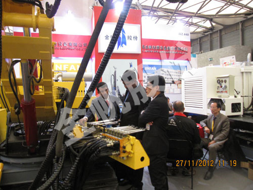 “金帆股份”作为国产的研发生产制造钻机企业,一直以来都致力于开发适合国人使用的产品,钻机种类已达40多种。此次展览的YGL-100A钻机是一款设计精良的多功能锚固工程履带钻机,而YGL-S100型声波钻机更是一款填补国内相关领域空白的高新技术产品,其采用的声波动力头技术来源于日本,是一种国际上的高效钻进技术。一经开展,各方友人纷至沓来,纷纷对金帆产品产生了浓厚的兴趣,金帆人员为大家进行了详尽的介绍,让各界朋友得以更加全面的了解金帆产品并获得了热烈的响应。