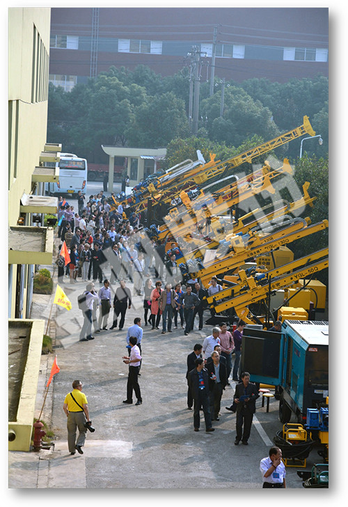 会议期间,全体与会人员专程前往金帆股份考察指导。公司厂区张灯结彩,洋溢着节日的气氛。代表们参观了整齐排放的多种新型钻机,以及新近投入使用的新产品大车间,众多代表对金帆股份近年来的科技创新成果和厂区新面貌,给予较高评价。